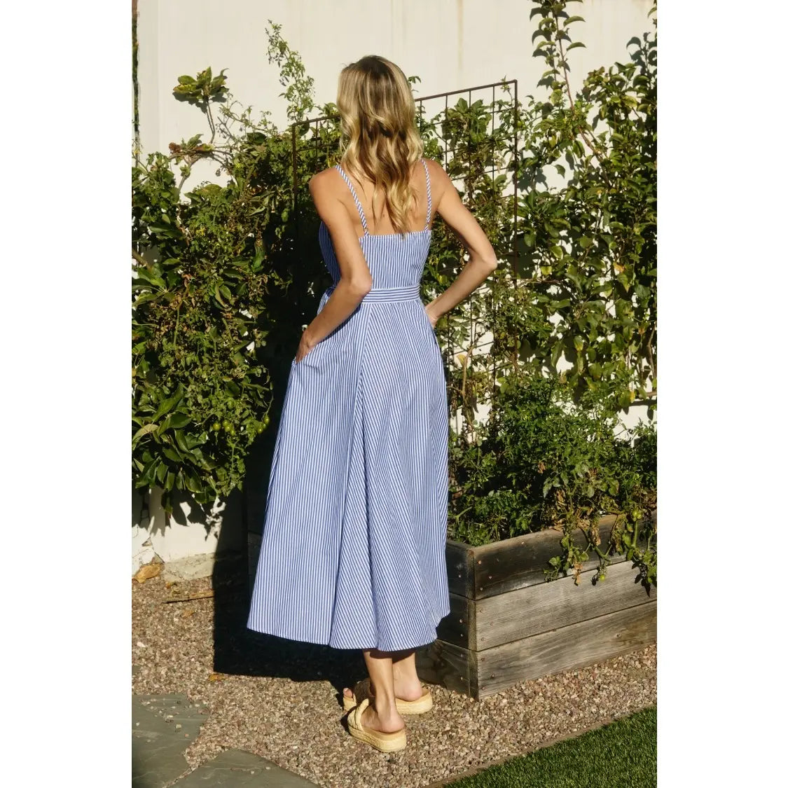 Striped Plunging Fit and Flare Dress